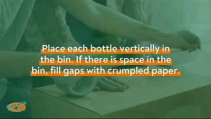 We recommend using plastic bins that are clearly labeled for moving your cleaning supplies as these bins can help contain liquids that may leak from some containers. Secure the lid for each product, apply tape across the lid to keep the lid closed, and wrap each bottle individually in plastic wrap. Place each bottle vertically in the plastic bin. If there is space in the bin, fill gaps with crumpled packing paper to prevent cleaning products from being tossed around during the move.